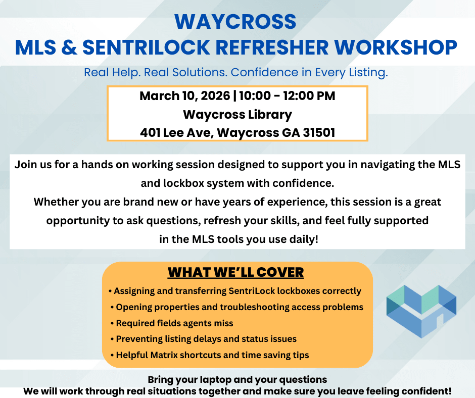 The Golden Isles Multiple Listing Service is hosting an MLS and SentriLock working session in Waycross designed to support you in navigating the system with confidence.